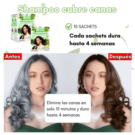 SHAMPOO DEXE ANTICANAS COLOR NEGRO Y CASTAÑO OSCURO (10 Sachets) + GRATIS PEINE para teñir