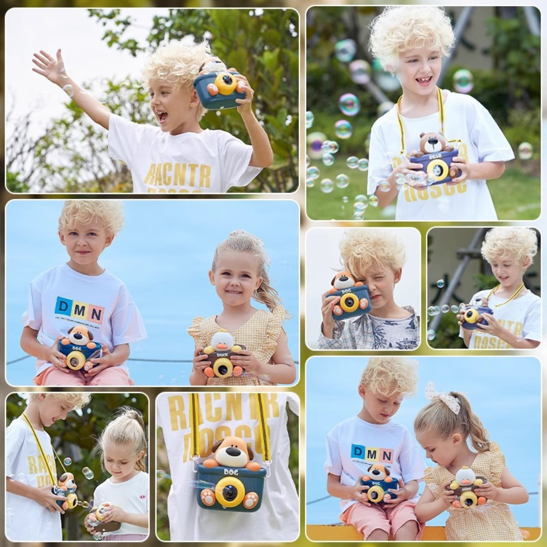 Convierte cada momento en una fiesta mágica con la Cámara magica de burbujas: ligera, segura y llena de diversión para tus pequeños.